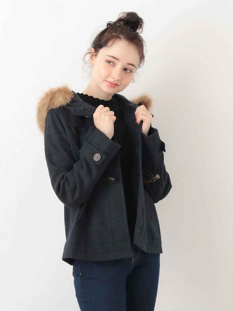 アウトレット フルフルダッフル ショート アイボリー チャコールグレー ピンク ベージュ ネイビー チェックネイビー Earth Music Ecology アースミュージックアンドエコロジー のレディースコート 1h94l0z0100 ファッション通販のstripe Club